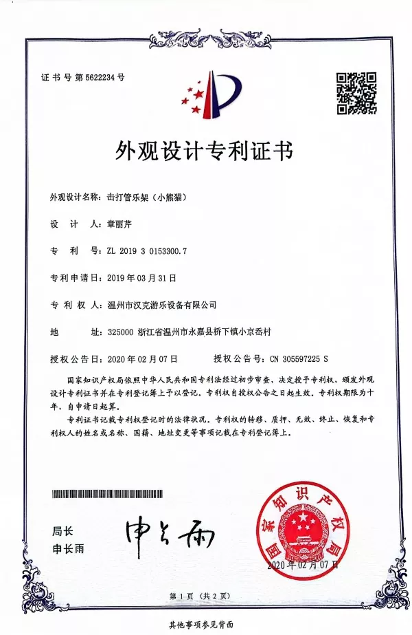 Som Hanks senaste produkt, pandaformat slaginstrument. Den är mycket lämplig för nöjesparker utomhus, dagis, grundskolor, temarestauranger och andra platser på grund av sin söta design. Marimba, gjord av elva aluminiumrör i olika färger, har en bred och livlig ton, vilket gör det lättare för barn att uppleva det roliga med musik