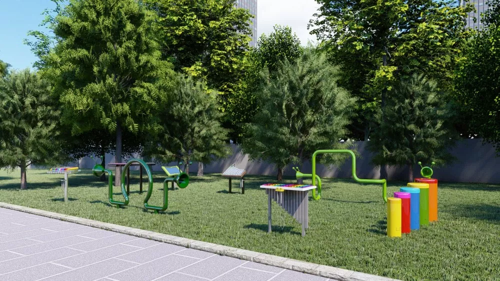 Detta lekplatssamtal är ett tvinnat galvaniserat stålrör med två söta hörn av olika höjder, vilket gör det bekvämt för barn i olika åldrar att leka tillsammans. Fotpedalen är utformad för att stimulera hörsel och hjälpa barn att förstå det kausala förhållandet mellan ljudutbredning. Väderbeständiga material kan säkerställa långvarig utomhusbruk. På grund av dess enkla installation och underhåll är det mycket lämpligt för daghem, klassificerade stadsparker och andra utomhus- eller inomhuslekområden för barn.