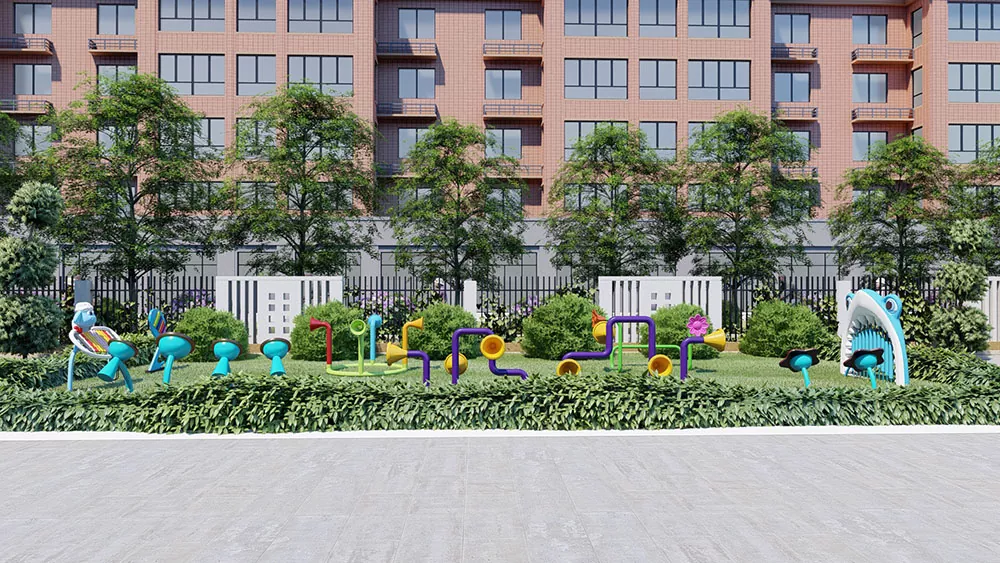 De talande rören utomhus Sonic Playground erbjuder en unik blandning av kul, utbildning och sensorisk stimulering, vilket gör det till ett viktigt inslag i skolor, samhällen och nöjesparker. Genom att uppmuntra kommunikation och social interaktion spelar dessa talare en avgörande roll i barns utveckling och skapar en inkluderande och berikande spelmiljö. Denna scenrörsuppsättning har flera talvinklar i olika höjder, vilket gör att barn i alla åldrar och förmågor kan tala och leka tillsammans och njuta av en magisk värld av ljud